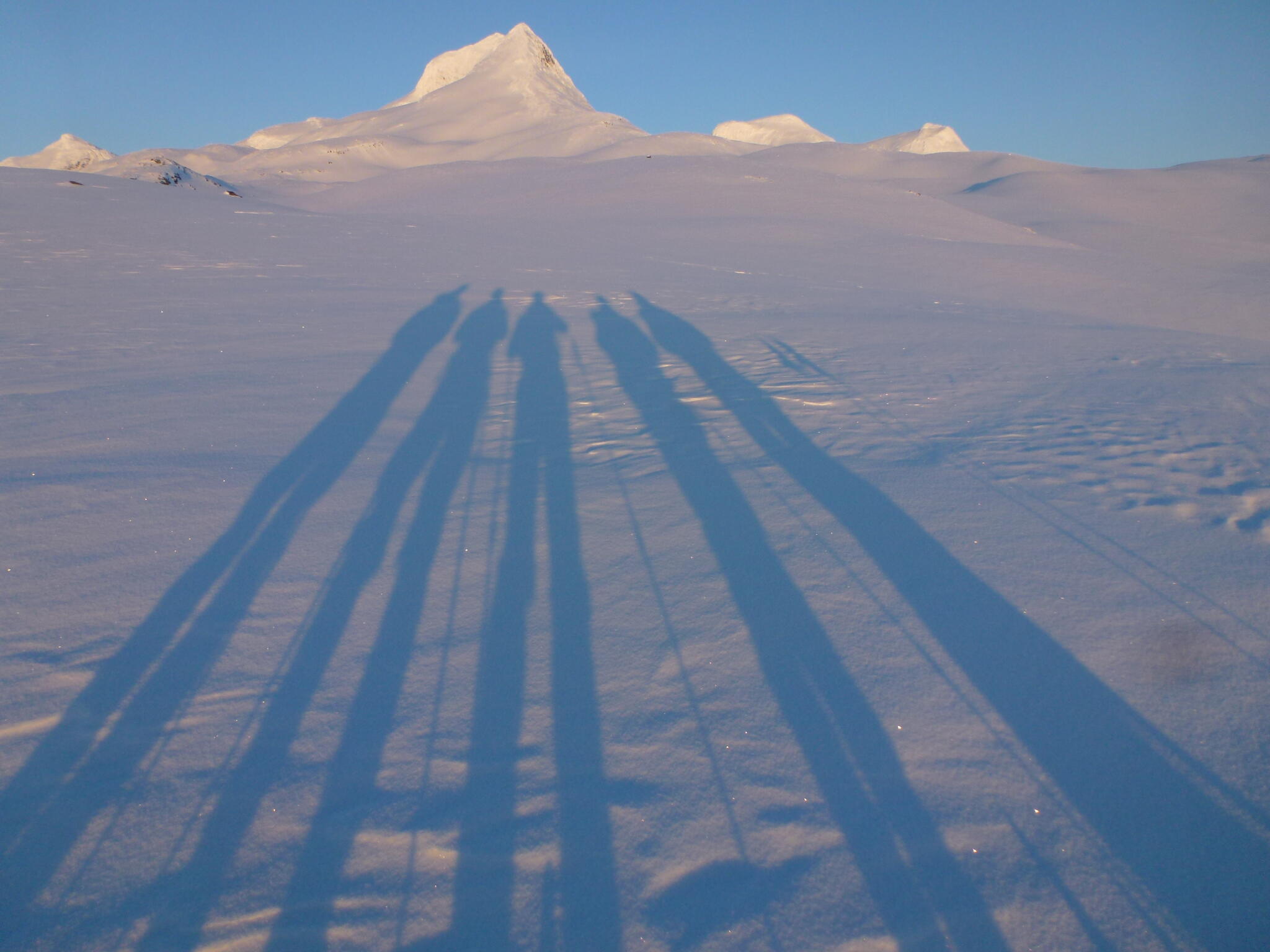 En blick bakåt mot Kokedaltinden och Sårjåstjåhkkå.Foto: Michael HeumanFoto: Anders AhnesjöFoto: Anders AhnesjöVi stannade och njöt av ljuset och de vackra vyerna. En sån fin dag! Foto: Magnus AhnesjöVardetoppen och Stortoppen. Uppe till höger om de hade vi varit denna dag. Foto: Michael HeumanEn skugg-grupp-bild, med Vardetoppen i horisonten. Foto: Anders AhnesjöFoto: Anders AhnesjöFoto: Michael Heuman