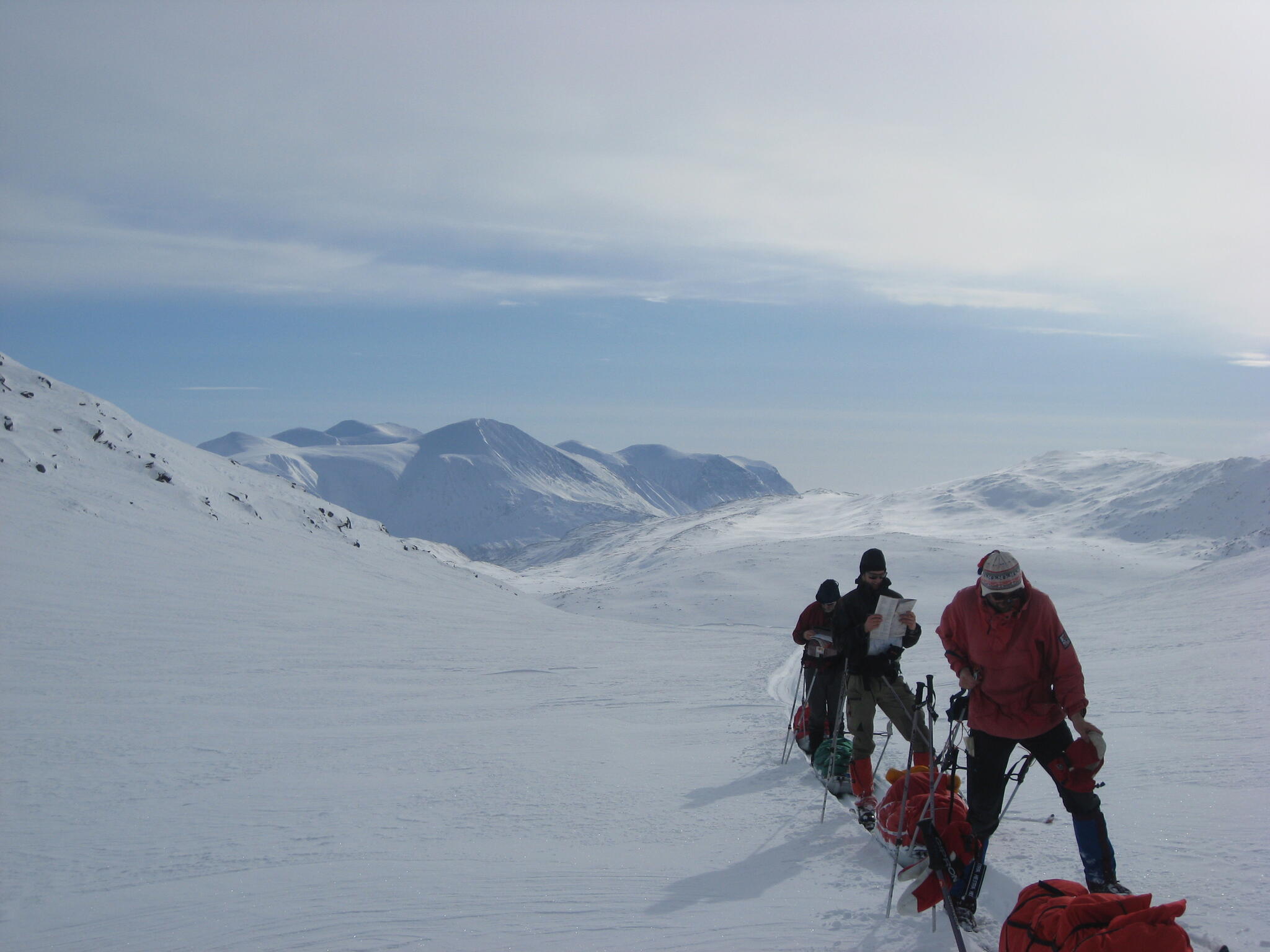 Vi utgick från Kvikkjokk och skulle ta oss till norska samhället Sulitjelma. Vi började med att dra fullpackade pulkor uppför Prinskullen vid Kvikkjokk i djupsnö. Det var en lite väl tung start. Men väl uppe fick vi fint före. Vi gick sedan åt Sulitelma. Ju närmre vi kom desto sämre väder fick vi med rejält snöfall och blötsnö. Det gick väldigt tungt att dra pulkorna. Väl framme vid Sulitelmamassivet låg vi insnöade i ett dygn i väntan på topptursväder. Vi gick sedan söder om massivet österut och kom till den lyxiga hyttan Ny Sulitjelma. Vi fick då strålande fint väder men förhöjd lavinrisk gjorde att vi avstod från att gå upp på Sulitelmatopparna. Men vi gick upp på en närliggande topp med fin utsikt över massivet. Dagen efter åkte vi ner till byn Sulitjelma får busss till Fauske och nattåg till Trondheim.