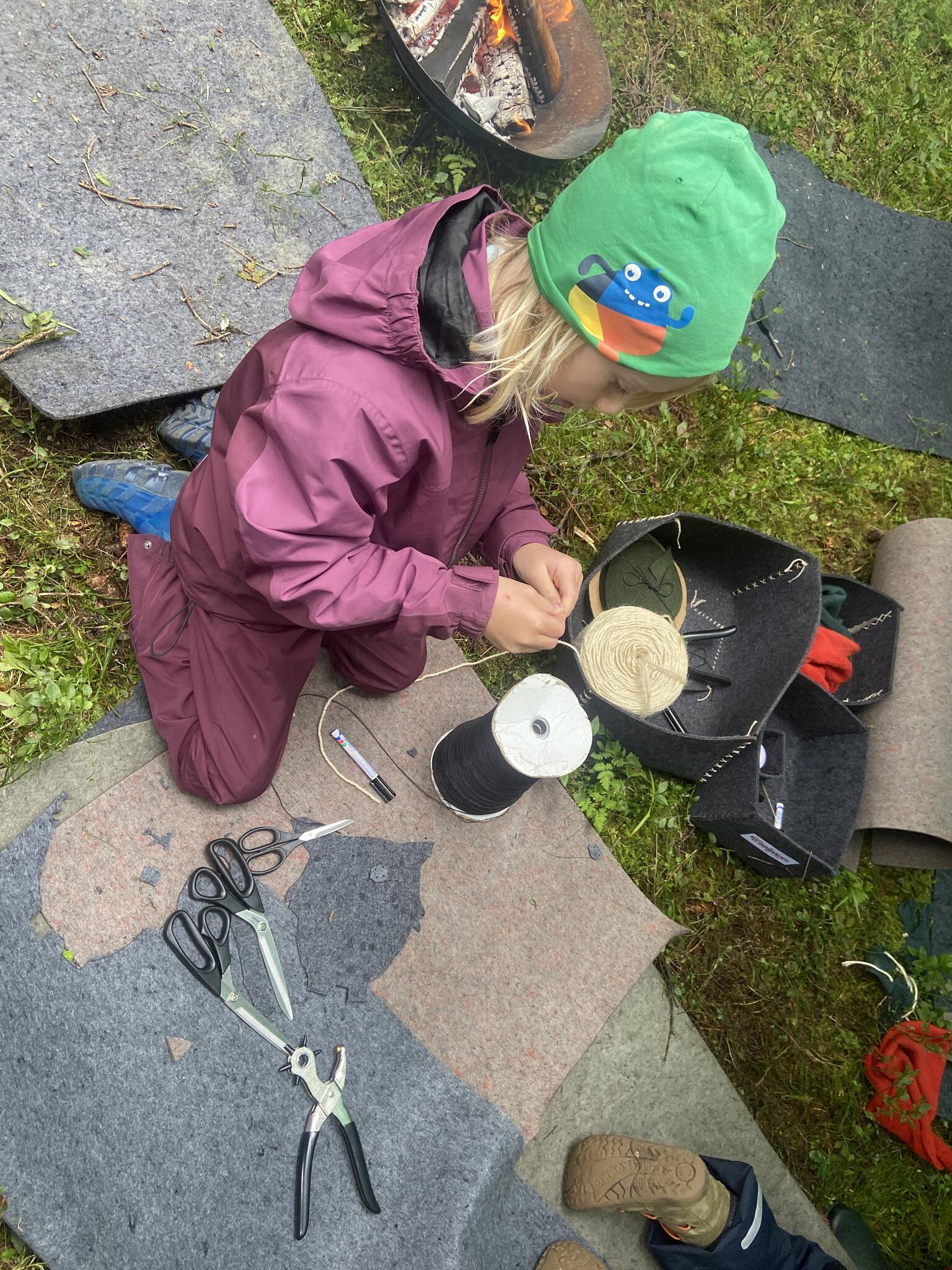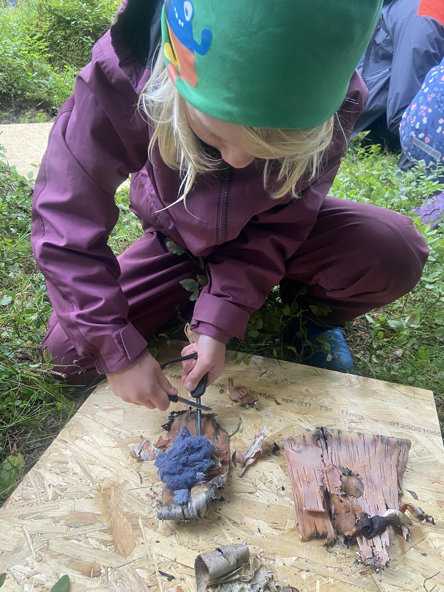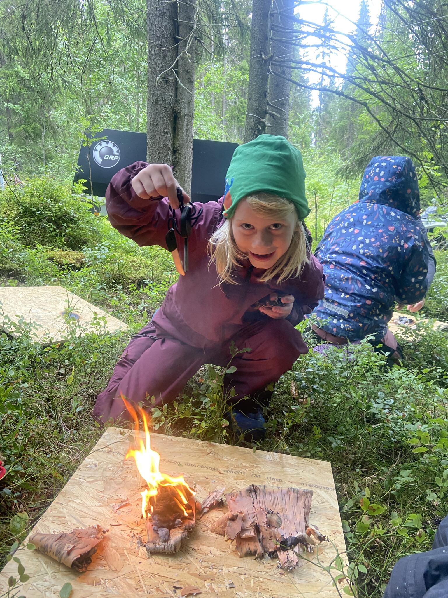 Jag och dottern var först på eldkurs. Hon lyckades få eld med eldstål. Kul!