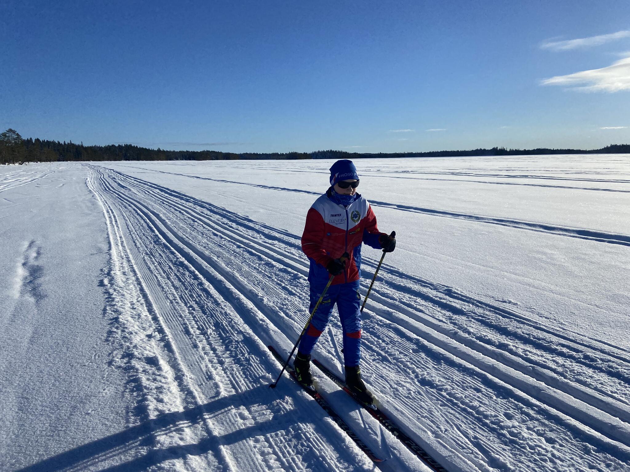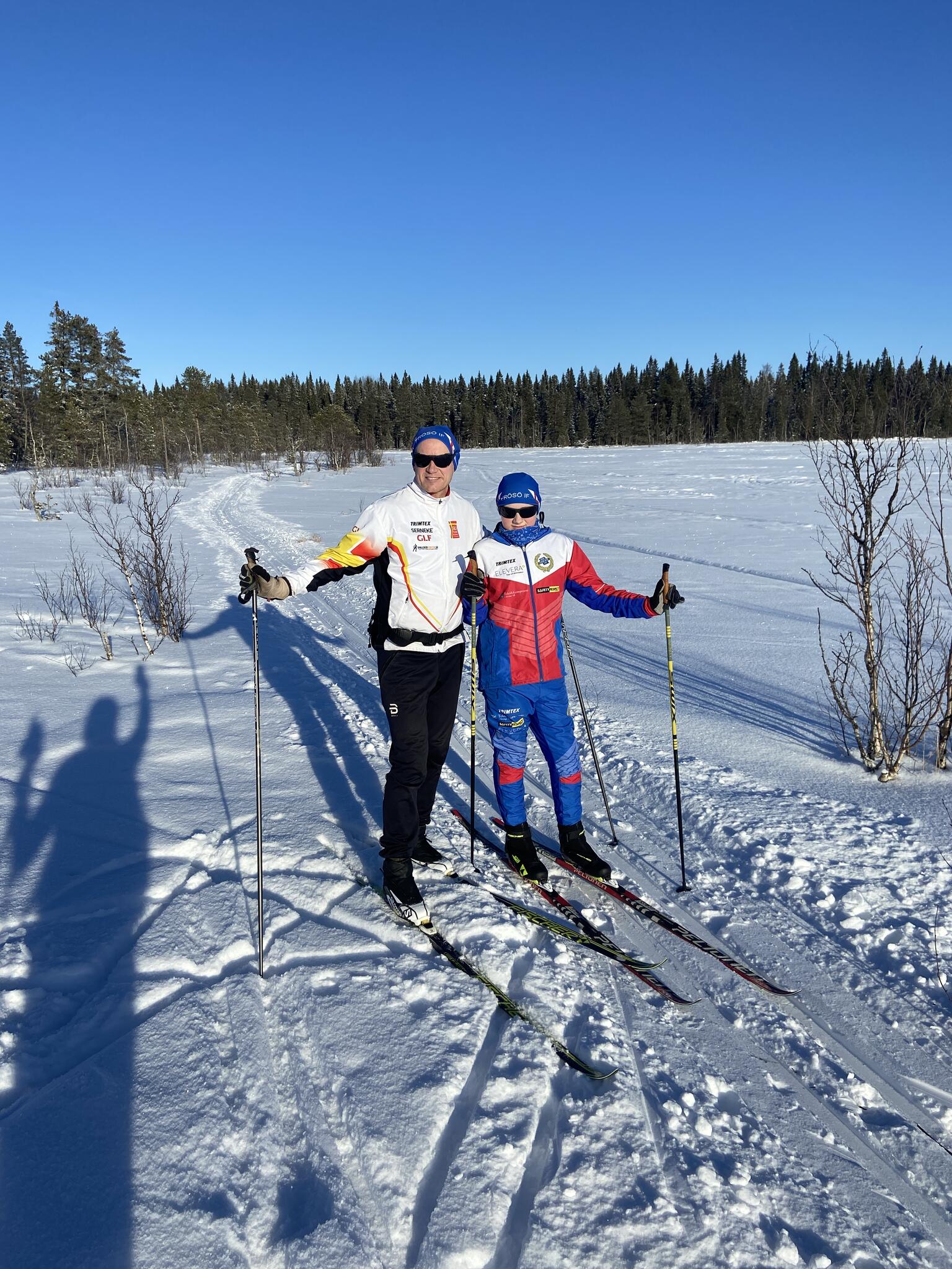 Strålande sol, gnistrande snö och vindstilla och en våffelstuga som mål. Jättekul att få skida med sonen och få frossa våfflor efter det.