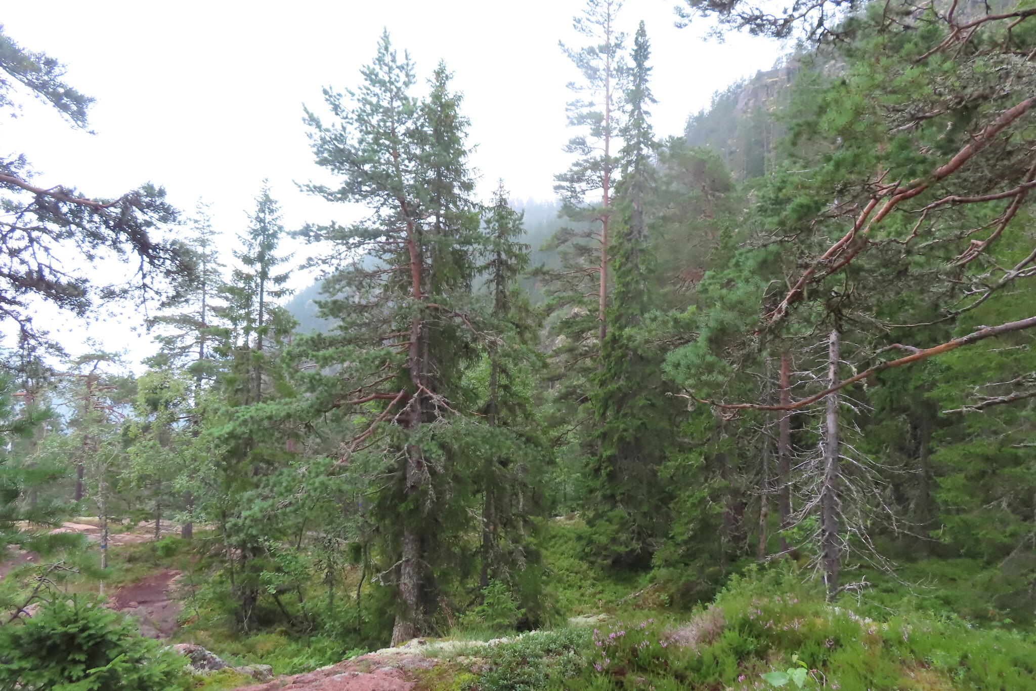 Efter Vedasjön gick leden längs bilväg några km. Sedan upp i skog, som blev allt finare. Upp mot Ringråberget och Torrmyran.