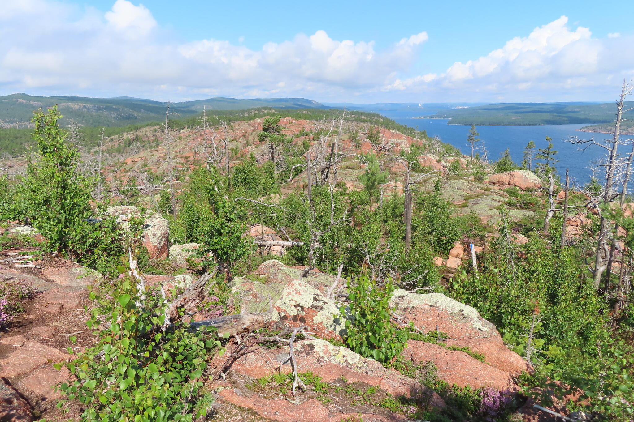 Jag gick vidare upp på Balesudden. Sista biten gick igenom avbränd skog. En naturlig skogsbrand för några år sedan. Härlig utsikt från udden!