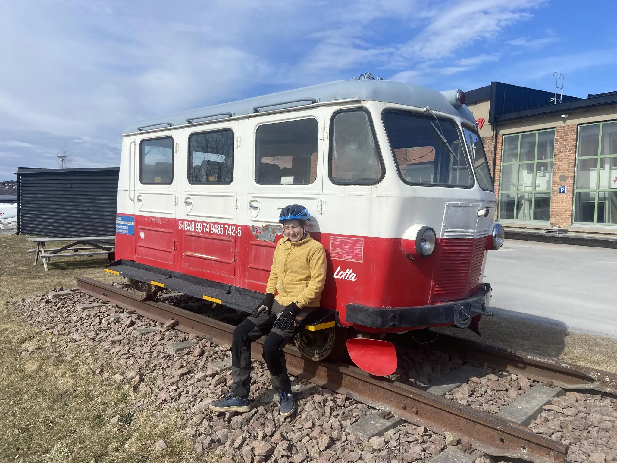 Vid Inlandsbanans hus kikade vi på lilla rälsbussen Lotta. Vi undrade var den användes.