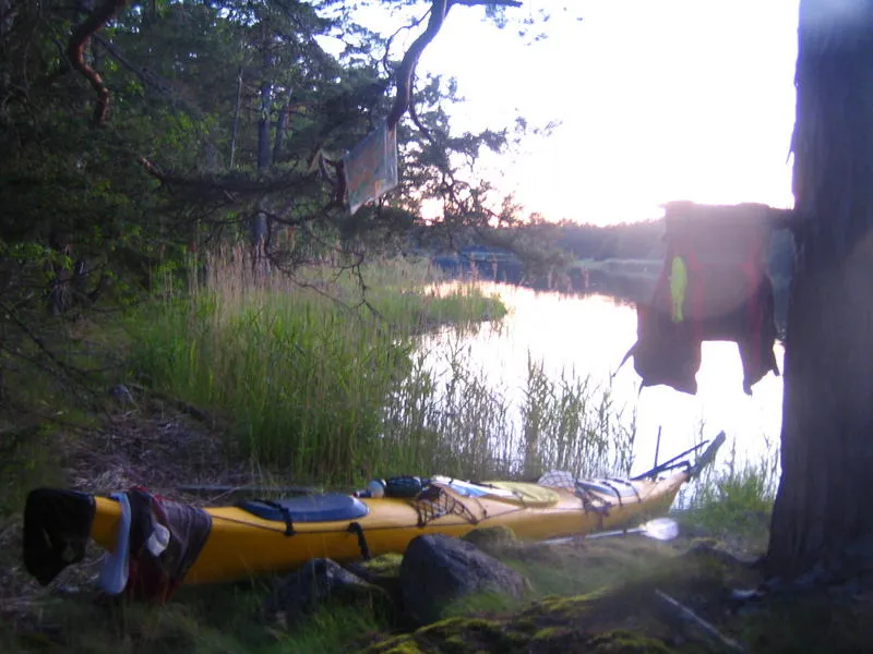 Även idag tvingats upp av åskan 2 ggr. På kvällskvisten mött ett par vilsna utländska turister i 2manskajak. Thunder forced us up on land twice today as well. Met 2 non swedish speaking tourists in a 2 man kayak, they wondered were they were.