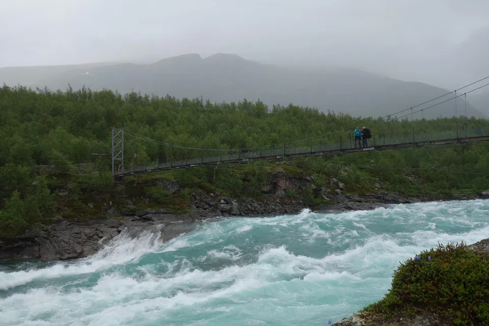 Efter flera veckor med strålande väder spår meteorologerna något sämre dagar framöver. Jag packar ihop mina saker och går ner till Hemavans Fjällcenter för att ladda med en rejäl frukost. Med magen full hinner jag inte längre än förbi flygplatsen innan det börjar regna. Trots det blir det en svettig klättring upp på Jofjället. Jag går i uppknäppt regnjacka och shorts för att inte bli för varm. Länsstyrelsens arbete med den nya Lapplandsleden märks av här. Det är nyspångat och därför mindre blött än väntat. Enligt kartan finns det flera vägar att välja på men jag ser bara en tydlig stig och följer den. Det fungerar bra fram till Holmtjärn. Där fortsätter markeringarna längs strandkanten och det blir rejält blött. När jag kommer fram till den västra änden ser jag spång leda fram ur skogen mot stigen. Tydligen har de spångat en bit upp i skogen från tjärnen sett. Kommer du från andra hållet går det inte att missa, men norrifrån fanns det inga skyltar som talade om det här. Förhoppningsvis blir det fixat till säsongen 2021.