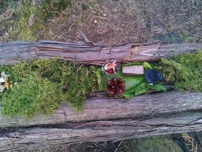 Vi gjorde en brasa med vår ved + en tjock gren som låg vid eldplatsen