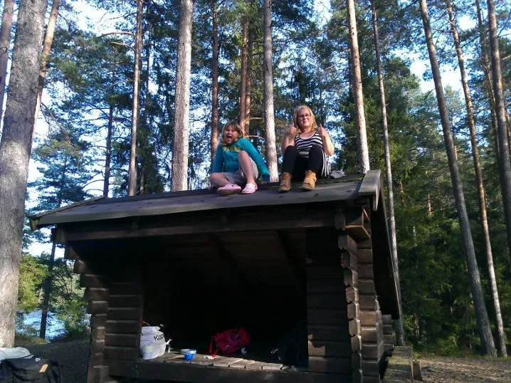 Aborrtjärnskojan som låg lite längre bort var riktigt fin, men vi skulle vidare. Leden gick upp o ner och vi traskade på, vi hade regnbyxor på eftersom det var väldigt blött i gräs och buskar.