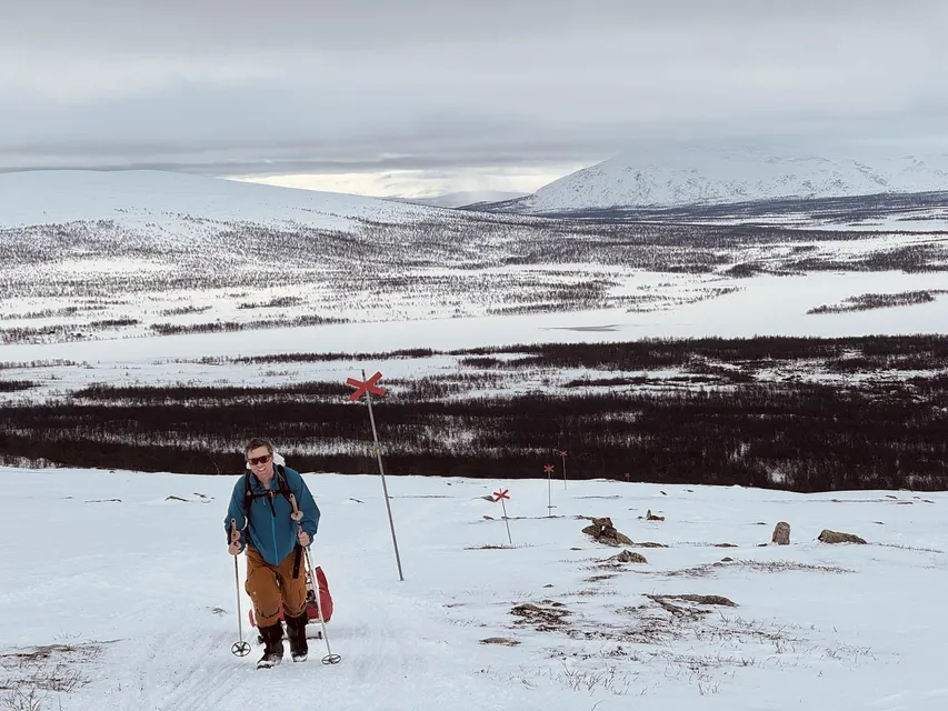 En kul grej hände när jag genade och kortslöt en onödig loop på leden. Gick förbi ett välskött småbruk med en skällande hund. 800m efter det hittade jag första möjliga tältplatsen på länge. En oplogad hyggesväg som hade en halvmeter djup snö och bred nog för tältet. Inga myrar på flera km just där så det fick duga som sovplats. Tog max 5 min innan en bil stannade. ”Aj då” tänkte jag, säkert ngn som har åsikt om att jag tänkte tälta på grusvägen. ”Drick du kaffe?” var istället frågan. Han var från gården jag nyss passerat och ursäktade sig med att han varit upptagen i ladugården med lamning och inte hunnit stoppa mig där. ”Då hade du fått kaffe inomhus.” Fyra hembakta bullar och en kexchoklad bjöd han också på! Sjukt snäll människa! Och otroligt uppskattat! :-)