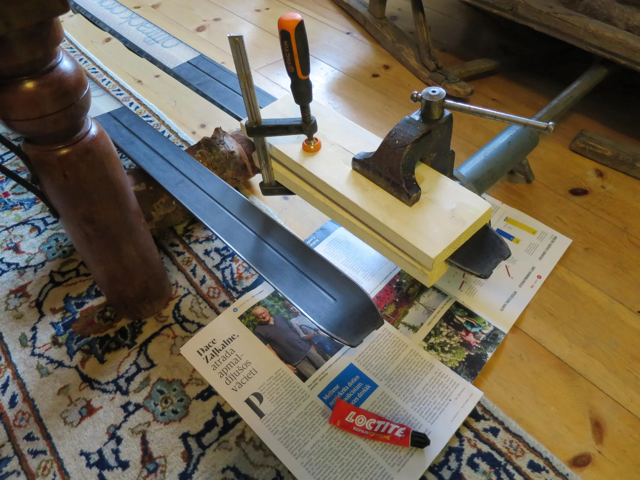 Så även om det bar emot så avslutade jag dagen där, i Kvikkjokk efter bara 16 km. Tog in på det synnerligen trevliga Holy Motors där jag även fick låna en tving och ett skruvstäd. Efter att ha nogsamt torkat ur skidan med hjälp av en hårtork så blev det limning och fixering inomhus framför braskaminen så härdningen skulle ske i rätt temperatur.