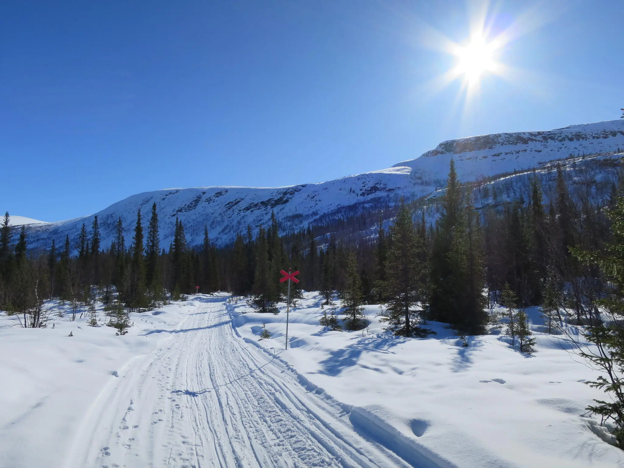 Efter Saltoulokta var det dags att lämna Kungsleden. Vill ju helst skida för mig nya vägar och då passar det bättre att komma norrut via Tjuonajokk och Nikkaluokta snarare än Kungsleden och Abisko. Så vi tog Luleälven österut till Kirjaluokta där det finns en led åt rätt håll.