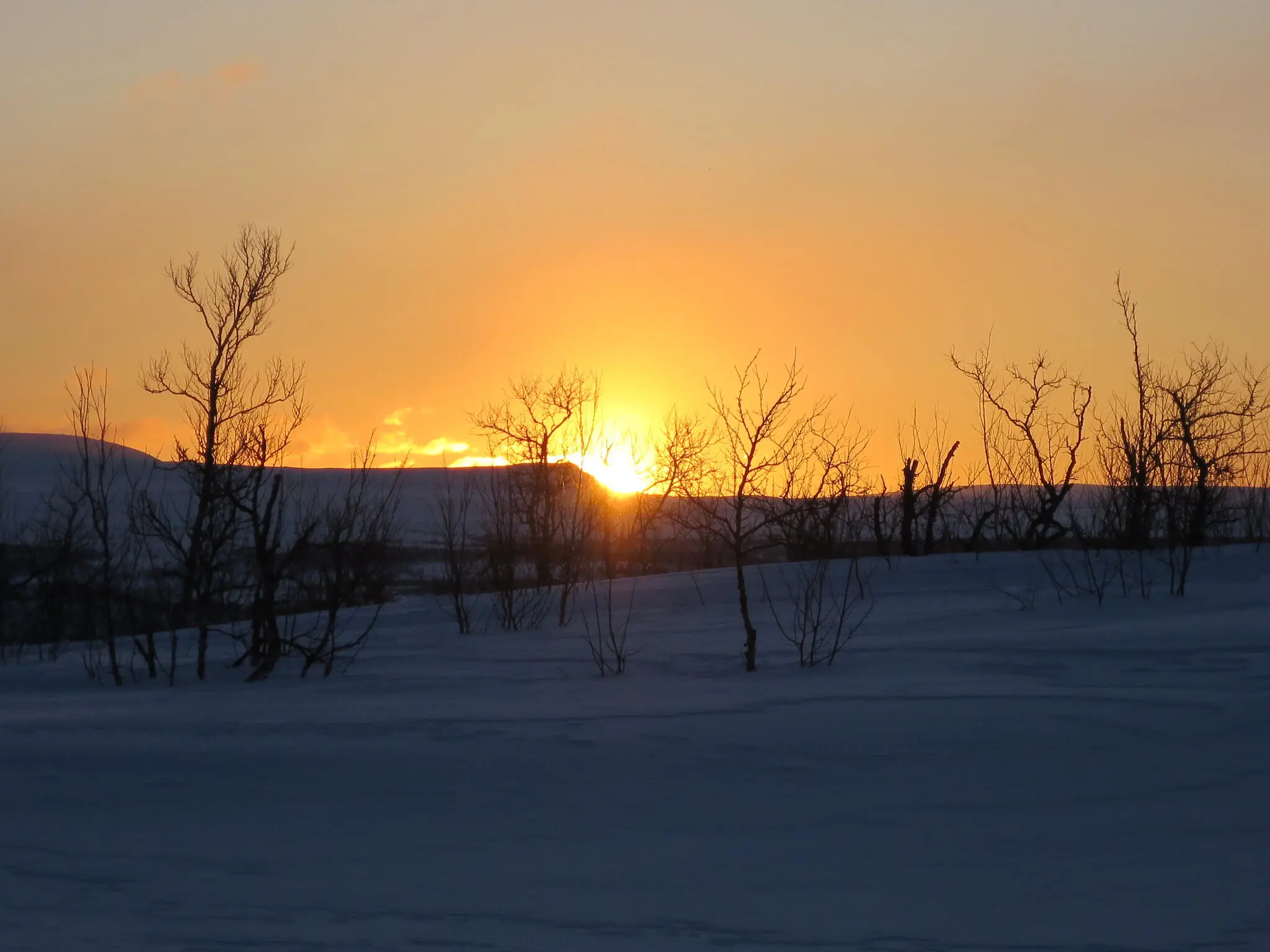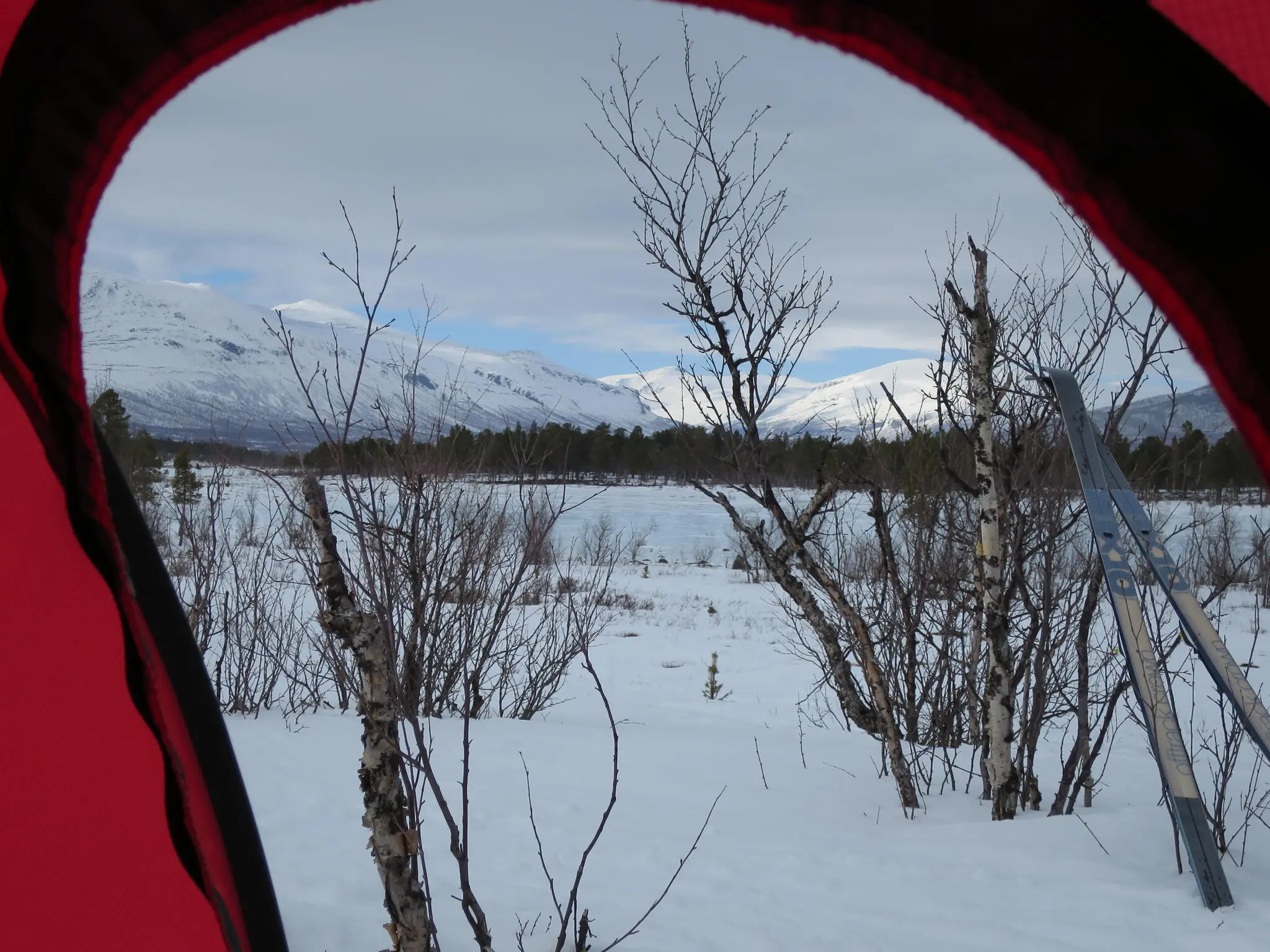 På kvällen konstaterades tyvärr en ny spricka på motsatt sida av skidan jämfört med igår. Suck. Betydligt mindre dock. Fick nyttja gravitation och kvällsljus istället för tving och braskamin. Verkade bli ok ändå men jag ville nu också försöka få fram en reservskida. Skickade en mängd Inreach meddelanden till min Karin hemma och hon lyckades posta en av mina gamla skidor till Nikkaluokta redan dagen efter. Kalenderdagsmässigt skall den hinna fram. Men så var det där med påsken och röda dagar. Hur påverkar det? Inte mkt att göra än att hoppas…