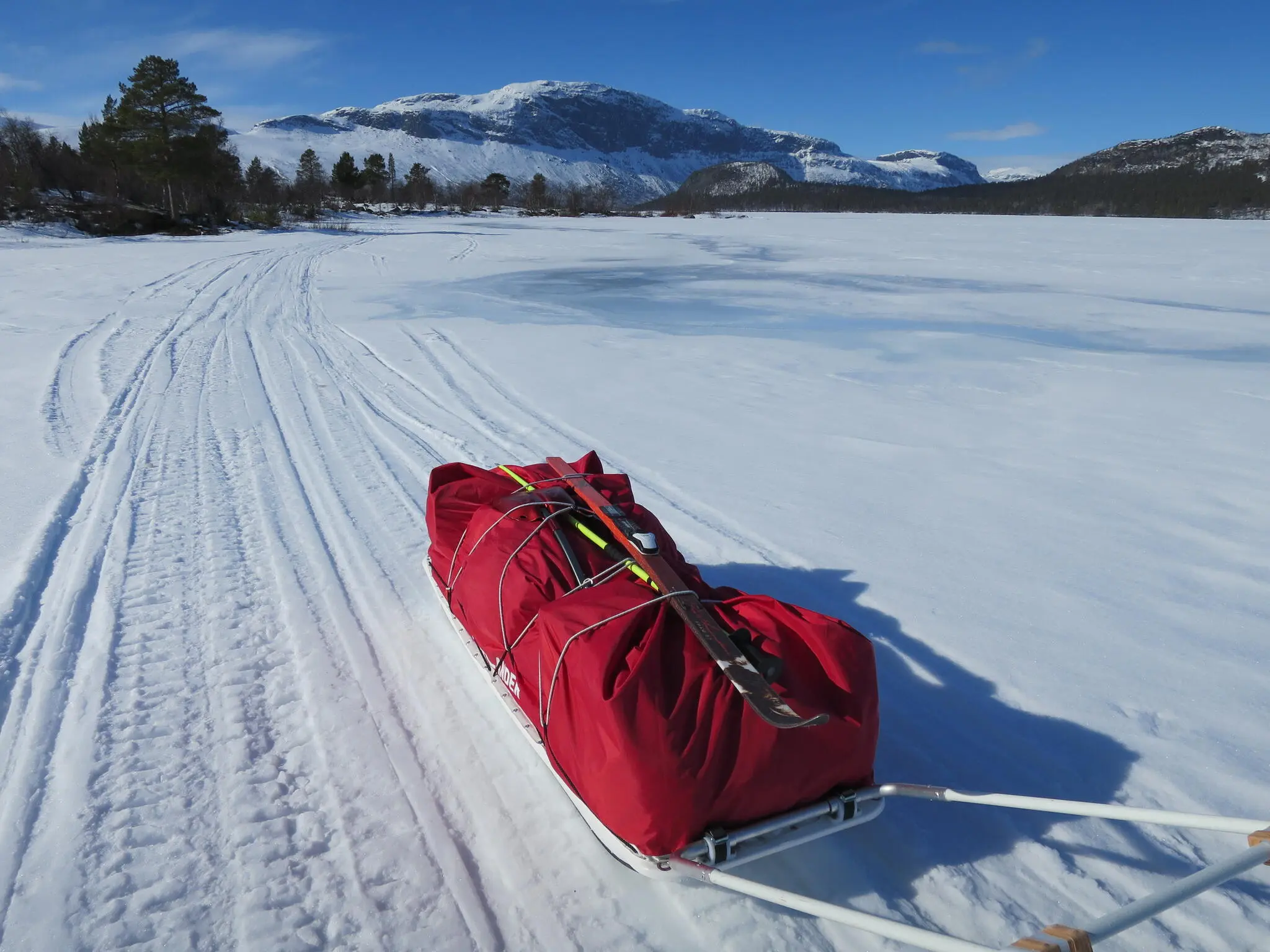 MEN!! STF Saltoulokta hyr ju ut skidor!! Så jag kunde inte låta bli att fråga efter udda begagnad hyrskida som jag skulle kunna ha som backup. Man vet ju aldrig om skidan Karin skickar till Nikkaluokta kommer fram i tid eller ej. Och de var snälla nog att sälja mig en väl begagnad men fullt användbar Åsnes skida med kort stighud till!! Tjohoo!! Hoppas att jag inte skall behöva den men nu ligger den där på pulkan! Känns oerhört skönt att veta att jag inte kommer behöva avsluta pga frostsprängd skida i alla fall!