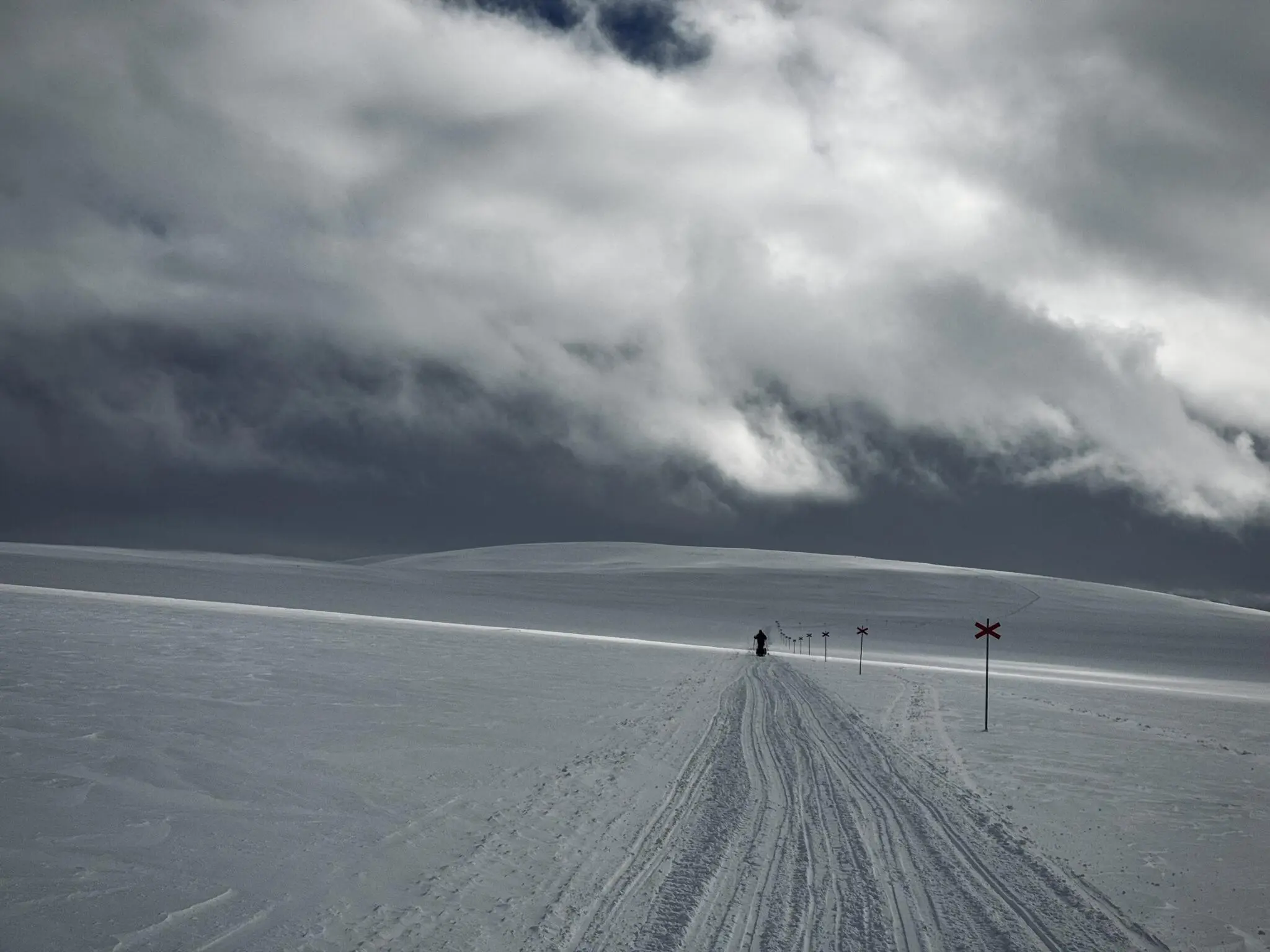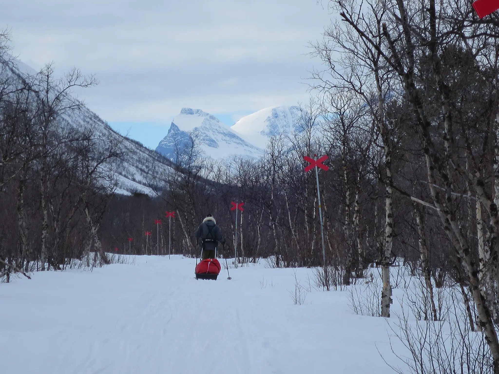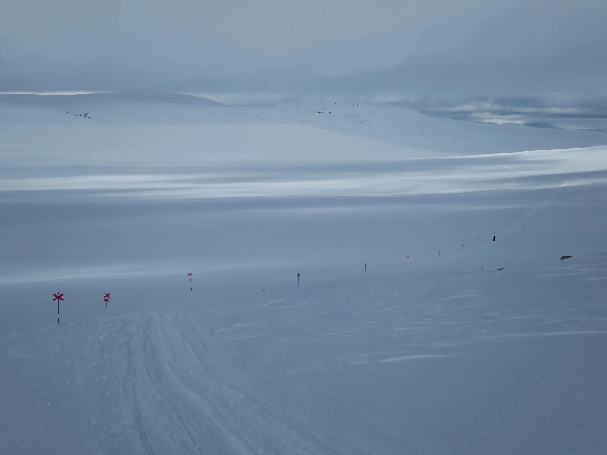 Reparationen verkade ha gått bra och som kompensation för föregående dags korthet blev det en tremiladag på etappens andra dag. Men vädret var fint och föret nästan klabbfritt så det gick ok trots den relativt tunga pulkan.