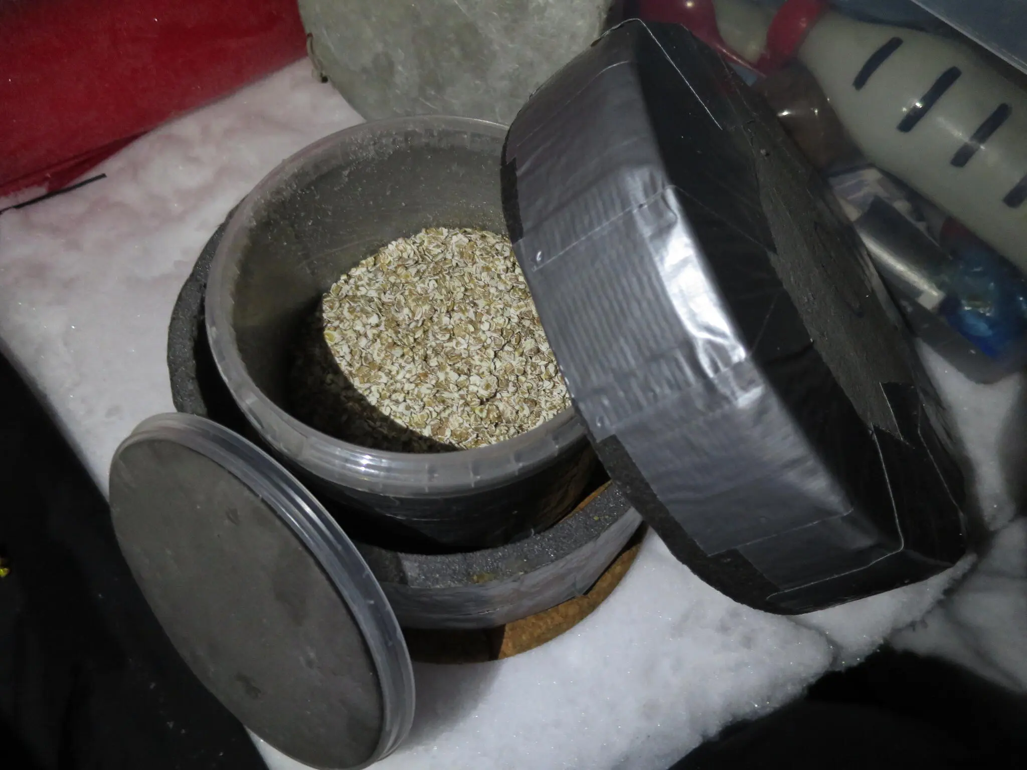 Rapsolja ja. Min kamrat föredrar en blandning mellan raps- och solrosolja som har påstår har lägst sorbetpunkt. Men i mina experiment har jag fått ännu bättre resultat med ren rapsolja från Zeta. Sorbettillståndet inträffar först vid typ -15 men även vid -25 blir den snabbt flytande igen om man låter flaskan ligga i det ljumma vattnet som skall kokas och sedan skakar häftigt. I bilden nedan syns flaskan med rapsolja i bakgrunden. Uppenbar sorbet där, troligen runt -20 alltså. Och mkt riktigt är bilden från februari och inte nytagen.