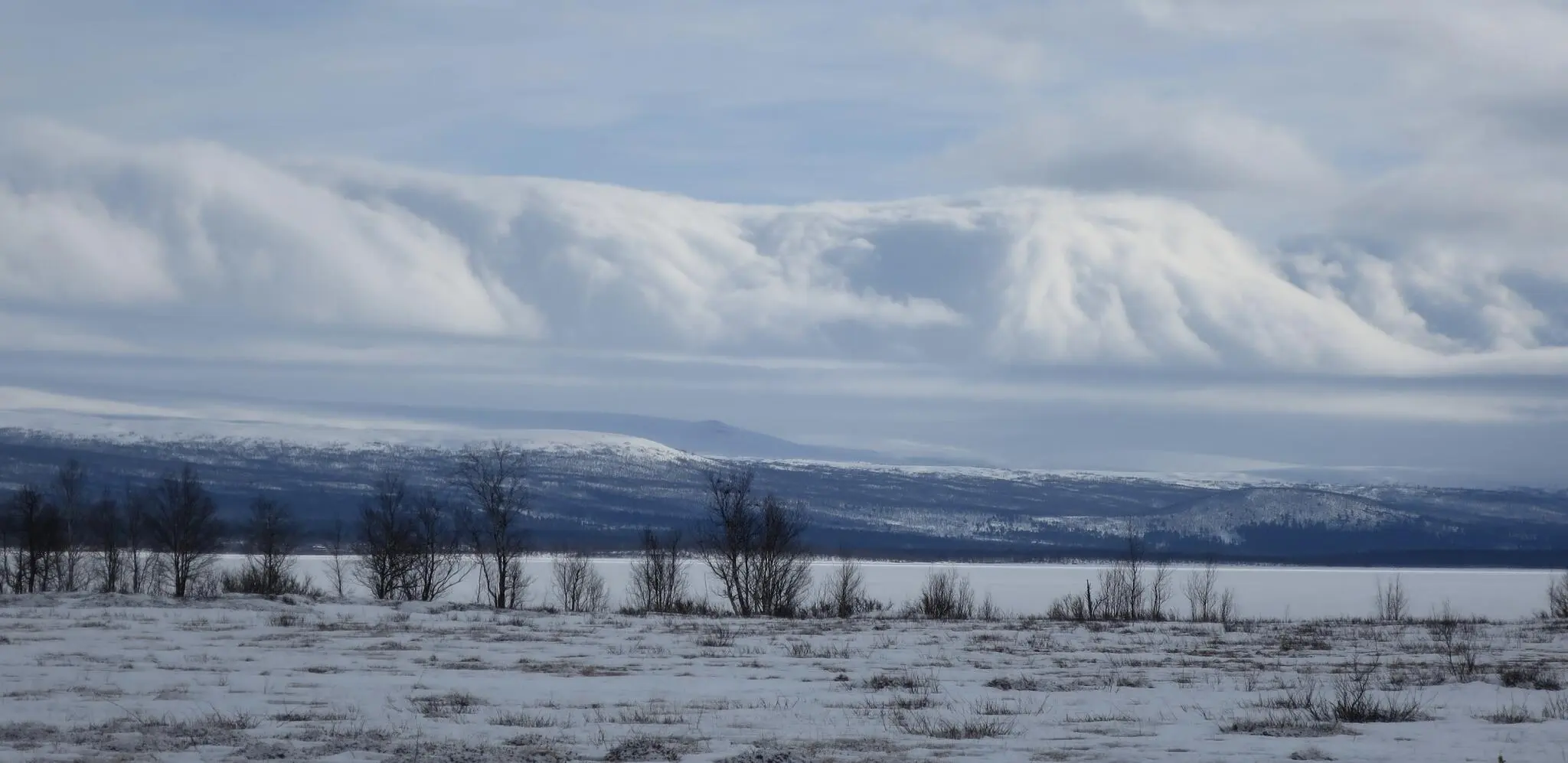 Ett lite kul molnfenomen gjorde att det såg ut som två bergskedjor när man tittade österut. En lägre av berg och en högre liggande bestående av moln men som kunde varit snö om man inte visste bättre.