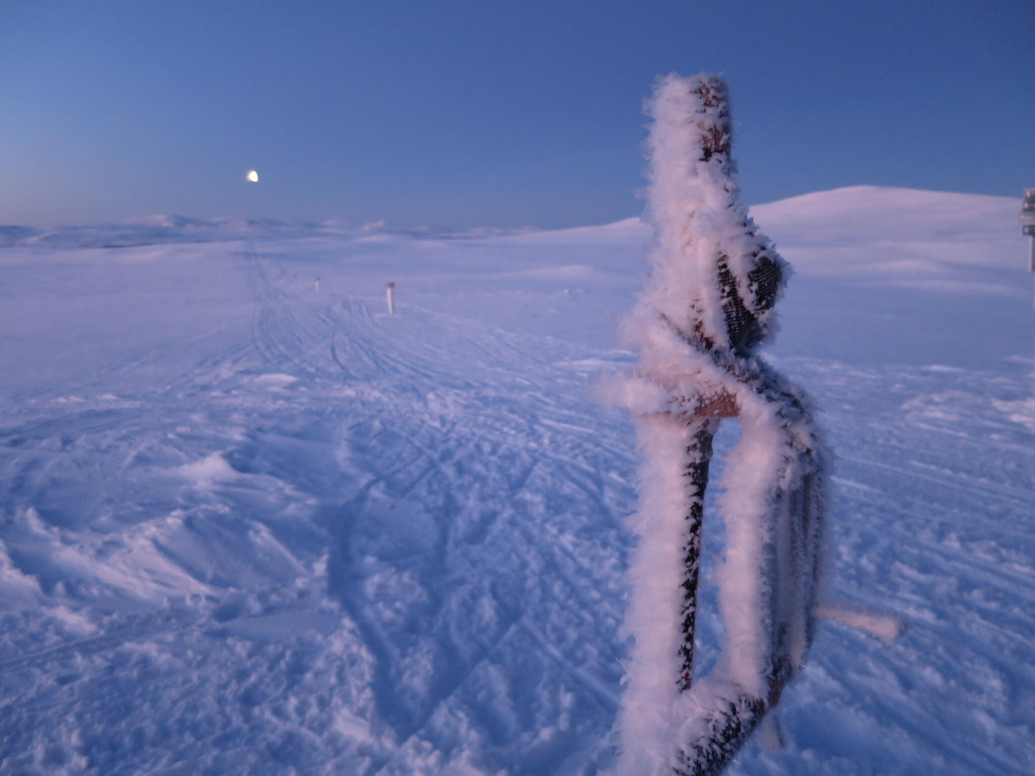 Första natten var kall som vanligt. Det kom dessutom in någon slags isdimma på kvällen så rimfrosten växte ännu snabbare än vanligt vilket tydligt syntes på stavarna på morgonen.