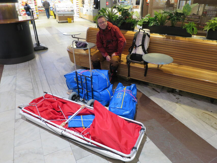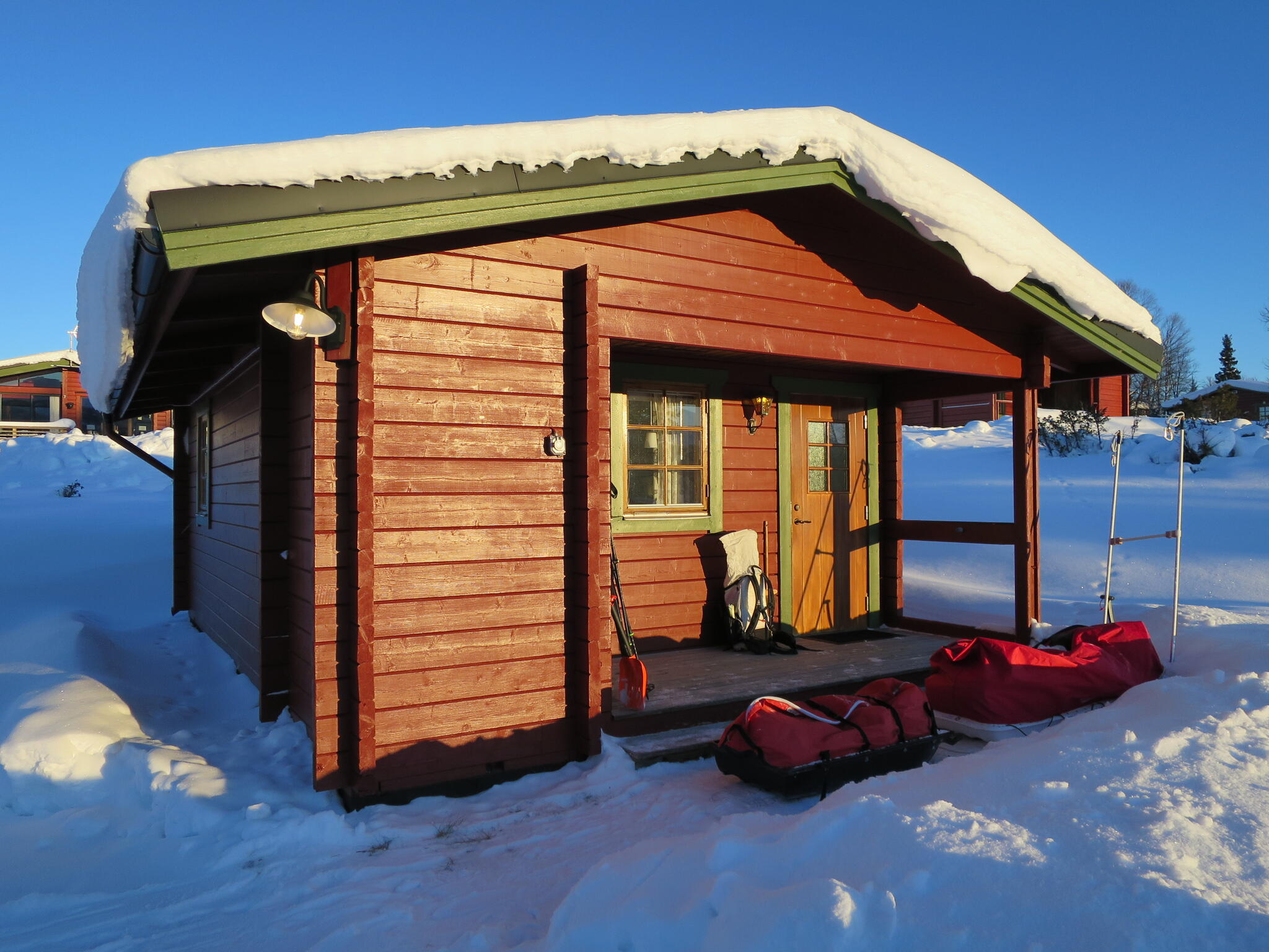 Efter att ha handlat checkade vi in i en förbokad stuga på Bruksvallarnas stugby och den första planerade etappen var avklarad. Depålådan väntade i stugan som var jättefin! Stugan alltså. Tanken var egentligen bara en natt här men givet att vi faktiskt ligger en dag före plan och att de kommande två nätterna också skall nosa på -30 så bestämde vi oss för att ta två nätter i stugan. Efter det skall det kanske bli lite mildare säger prognoserna. Så det blir en dag i stugan för att tvätta, bre lunchknäckemackor och torka all utrustning. För det är ju tyvärr så att ju kallare det blir ju blötare blir alla dunsaker. Kondenspunkten kryper in mot kroppen med fallande temperaturer. Så ju kallare det är ju blötare blir sovsäcken vilket är en mycket olyckligt samband. För det är inte jättekul med fuktig sovsäck när det är kallt.