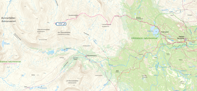 Enligt min naiva förplanering skulle jag nog hinna in till Östra Bunnertjärnen från Vålådalen på en dag. Därifrån skulle jag kunna ha en bra bas för en dagstur innan jag skulle behöva ta mig en liten bit på vägen tillbaka till Vålådalen för att lägga upp det för en lagom tur tillbaka på den tredje dagen.