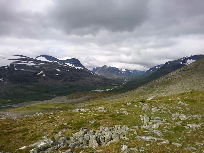 Jag kände en stor tacksamhet när jag vaknade vid Sårjåsjaurestugan, en tacksamhet över att vara där jag var. Den känslan följde med till Jiegnaffo, eller foten av den.