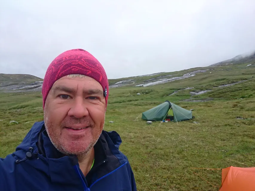 Det var en god natt, och vi vaknade till nästan kalasväder. Gråväder, men det spelade ingen roll. Nu skulle vi äta frukost, packa ihop tälten och äntligen vandra in i Sareks nationalpark.
