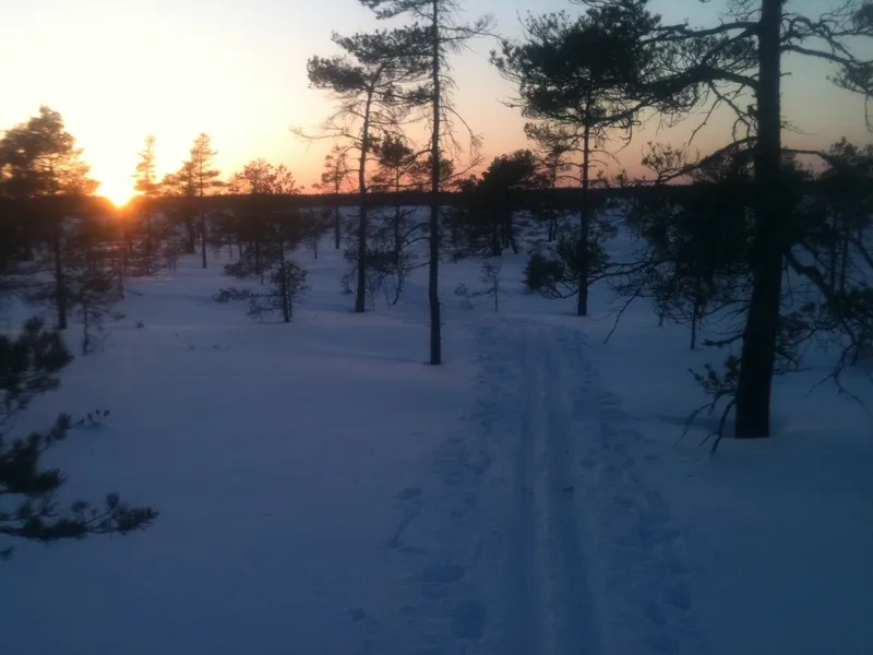 Komosse 23-24 mars. Övernattning i vindskydd pga tältförbud. Klart väder och månen, som nästan var full, bjöd på magisk skidåkning över mossen. Och kyla! Men dubbla sovsäckar och varmvattensflaska gjorde att jag sov gott utan att frysa det minsta trots 14 minusgrader. Läs mer här: http://www.utsidan.se/blogs/topptur/index.htm?date=2013-03-01