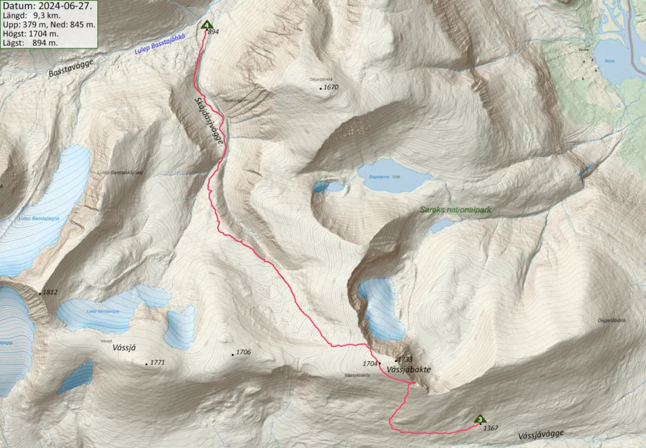 Andra delen av vandringen runt Skoarkki. Vandringen fortsätter genom dalgångarna/bergspassen Skájdásjvágge och Basstavágge. Tid: 27:e juni till 29:e juni.