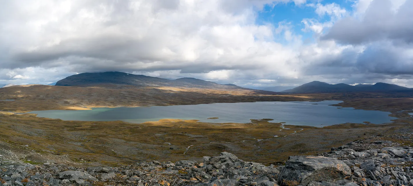 Dag 5 och 6 av turen Gränsfjällen i norra Padjelanta. Gör en sväng upp på Rähtjátjtåhkkå för att fotografera Galbejávrre och Stibokjávrre. Fortsätter genom Ræhtjátvágge (Retgatdalen) tillbaka in i Norge.