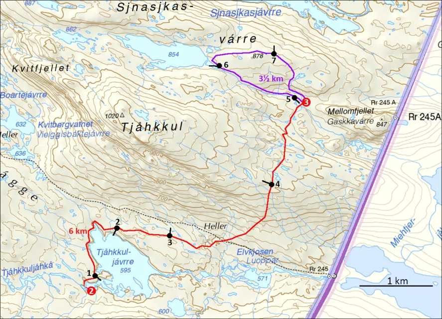 Tjåhkkuljávrre - Mellomfjellet - Rähtjátjåhkå.