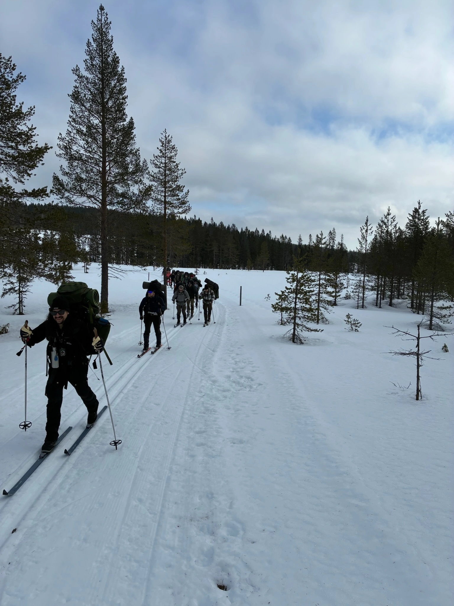 Efter urlastning skidade vi i grupp mot olika punkter på kartorna vi fått. Efter några timmar var vi framme vid nattens lägerplats.