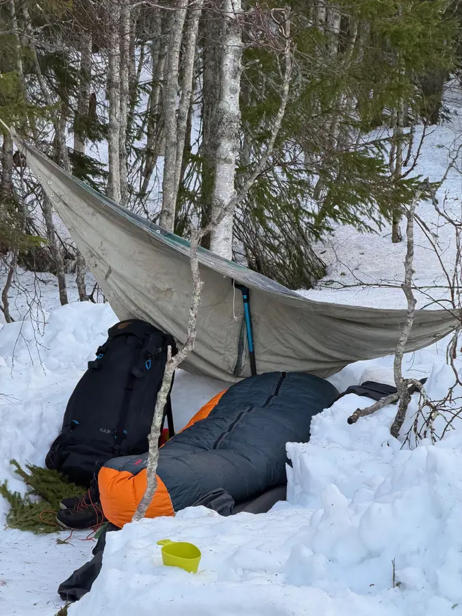 Jag fick också många insikter kring min utrustning. Jag behöver mer värme än jag hade möjlighet, både dagtid och när jag sover. Detta trots en sovsäck med komforttemp på minus 17 grader. Och mina förstärkningsplagg ska helst gå att dra på utanpå mina andra kläder, så att jag slipper ta av till exempel vindjackan för att ta på en tröja.