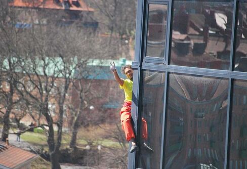 Vid 12.30 fredagen den 3:e maj tog sig klättraren Said Belhaj upp för den 78 meter höga byggnaden Gothia Towers. Klättringen invigde den nya mässan ...