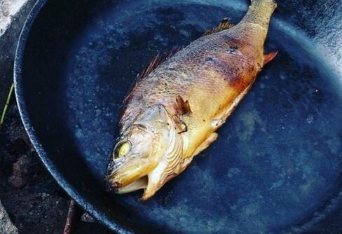 Ett enkelt sätt att röka fisk är att lägga den insaltade fisken på galler över elden med en stekpanna över (eller vad du har tillgängligt).