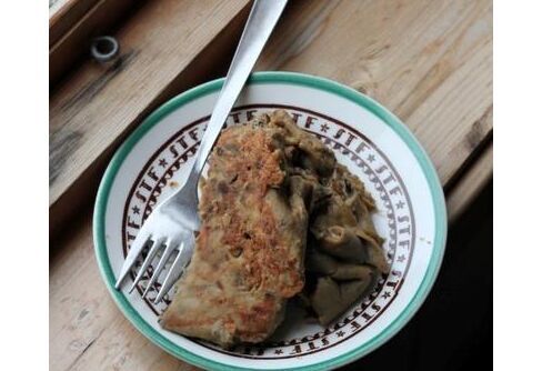 Dessa svampcrêpes är egentligen vanliga pannkakor med "svampstuvning" gjord på pulversås/ pulversoppa.