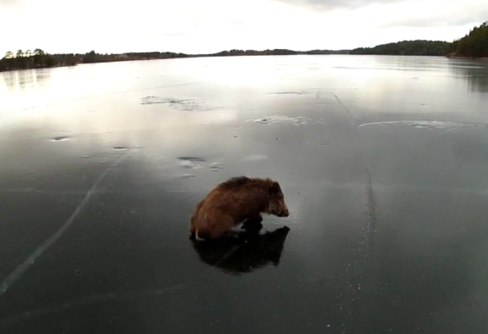 I helgen hjälpte en grupp skridskoåkare fyra vildsvin att komma iland, svinen hade förirrat sig ut på den för dem alldeles för hala isen.