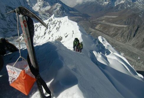 Island Peak och världens högst placerade OL-skärm 6189 m.ö.h