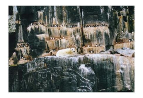 Den 1:a juli i år siktades en isbjörn vid det stora fågelberget Alkefjell, som ligger vid Hinlopenstredet Svalbard. Tidigare har en halvdöd isbjörn ...