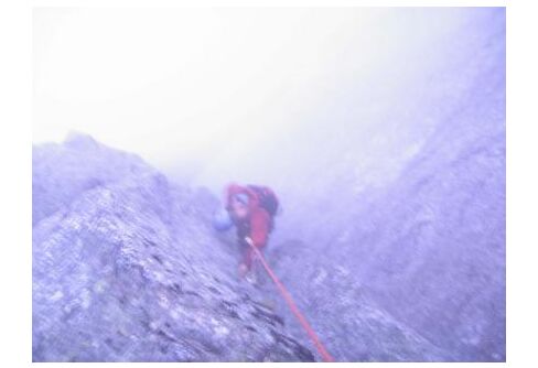 Rackar på den medhavda utrusntingen och så börjar jakten mot vädret...som drar in redan på 2.a replängden. -ska vi vända om?, frågar Denny lite ...