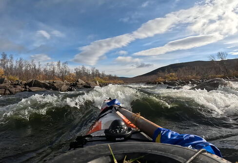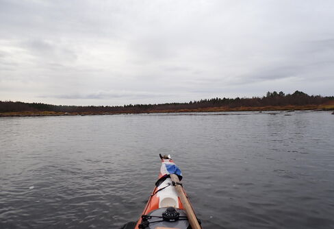 De var start för den första av gränsälvarna Könkämäälven och det började med sjöpaddling i blåst.