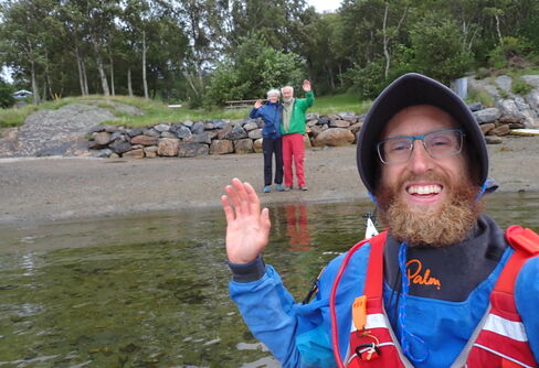 Det hade spridit sig mellan surfarna i bobilarna (4 st) att jag höll på att paddla Norg- Sverige runt, så jag ...