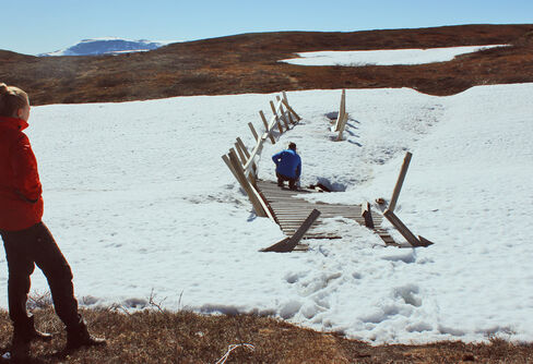Ovanligt mycket snö kvar i Norrbottensfjällen