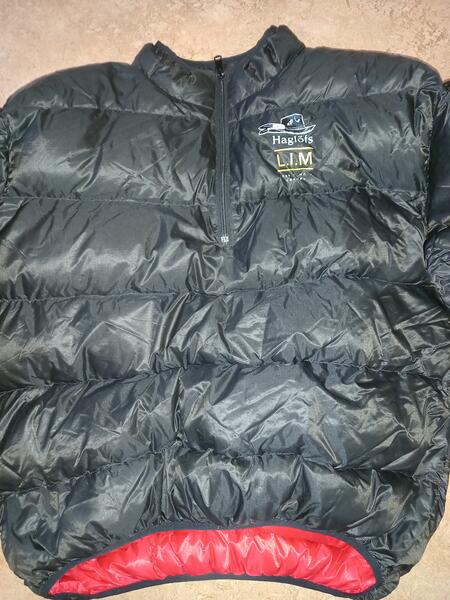 Haglöfs LIM dunjacka. Pertex yttertyg, ( slitstarkt), kort dragkedja i halsen, inga fickor, invändig packficka för förvaring av jackan. Perfekt förstärkningsplagg vid vila, i tältet o.s.v. nyskick. Läs hela