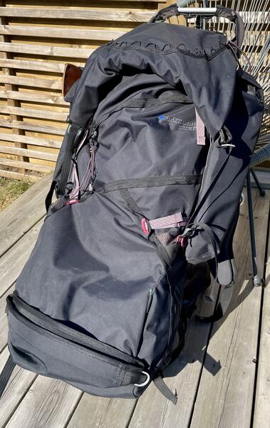 Klättermusen Mjölner 75l där du också får med 2 st 6 liters sidfickor (se bild). Ryggsäcken har Kättermusens patenterade justerbara Carry-On-Bones-system med Butterfly Bridge, samt en extern aluminiumram och vadderad ryggplatta för bärkomfort och andningsförmåga. De vadderade axelremmarna är fästa på en central punkt för full rörelse och det vadderade höftbältet är rörligt för att följa dina höfter.