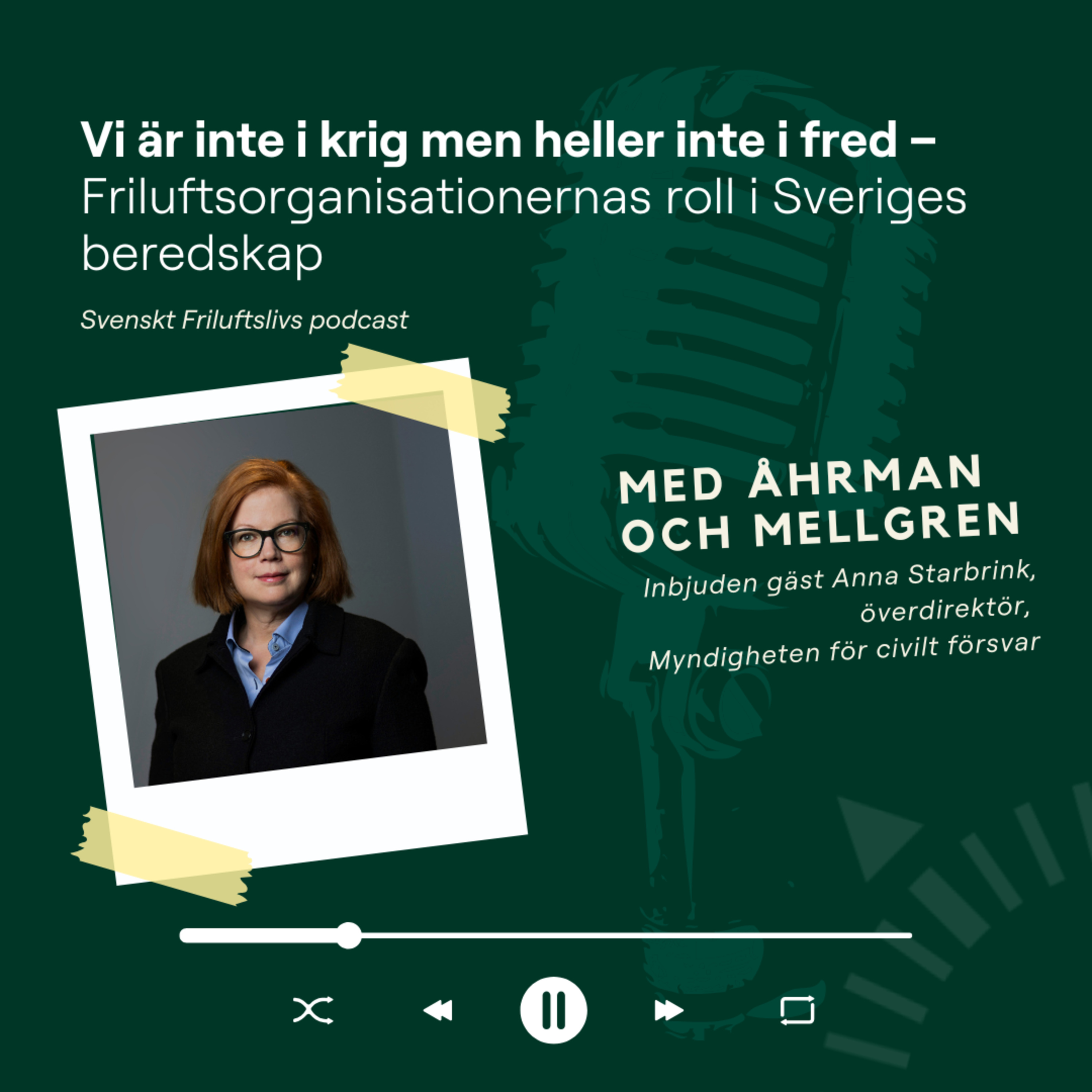 I detta avsnitt träffar vi överdirektör Anna Starbrink på Myndigheten för civilt försvar (fd Myndigheten för samhällsskydd och beredskap, MSB) och pratar beredskap och friluftsliv.