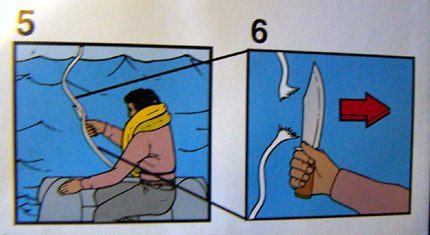 Follow the instructions: ...bla...bla..Cut the rope with the knife...etc.