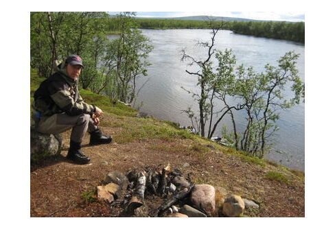 Kaitumälven 2011 - Del 6, sista delen... Morgonen låg där stilla och behaglig. Solen sken och det glittrade i vattnet nedan för vår tältplats. Tobbe ...