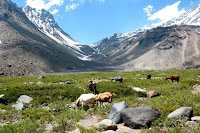 Stigen slingrar sig sakta uppåt mot den glaciär vi ska korsa. Med