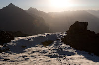 femtusenmeters toppar så långt ögat når. Under eftermiddagen smälter vi