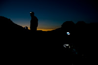 pannlampor för att se stigen. Samtidigt som det börjar ljusna ökar