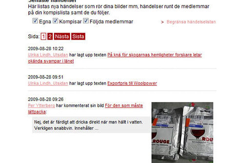 Vi har utökat "Min sida" med en händelselista, som gör det lättare att se vad ens kompisar och andra medlemmar man vill följa lägger ut.