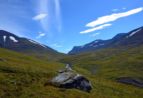 Ett av många alternativ i närheten av Kungsleden. Det finns många spännande dalgångar att utforska i Södra Abiskoalperna. De valde denna gång att gå ...